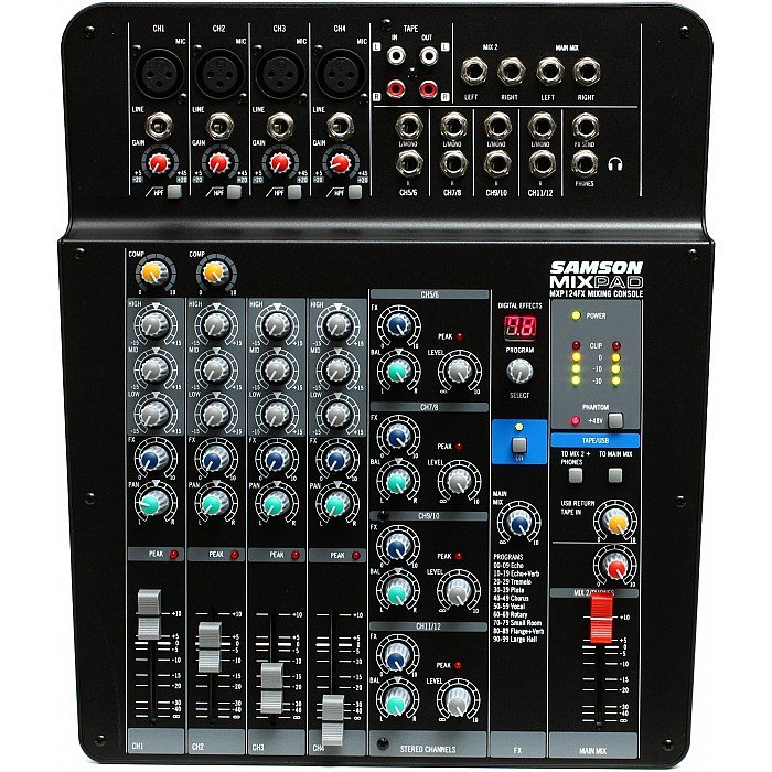 The all-new MixPad® MXP144FX Compact, 12-Channel Analog Stereo Mixer with Effects and USB demonstrates Samson's commitment to quality, affordability and professional specs. This lightweight mixer offers all of the sonic clarity, ease of use and premium performance that serious musicians demand.