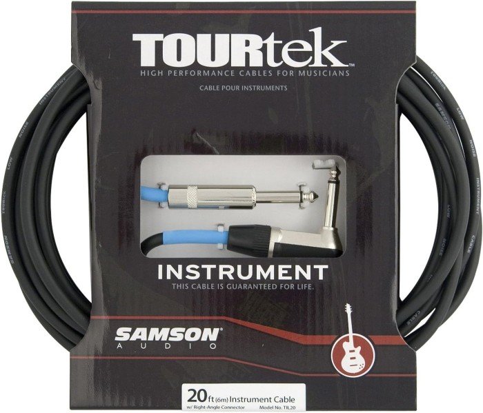 Samson TIL20 20′ Tourtek Instrument Cable is designed for musicians and sound engineers who require superior sound quality and demand ultimate reliability. The cable feature inner stranded copper conductors covered by a PVC insulator, which is wrapped in a second carbon insulator, then wrapped in a braided copper shield with 96% coverage. This is protected by a 6 mm PVC outer jacket. The low capacitance cable provides excellent rejection of RFI/EMI interference, extremely low handling noise and superior sound quality.