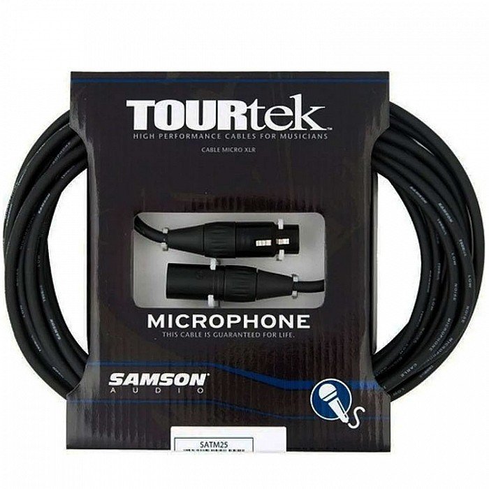 Samson TM25 25′ Tourtek Microphone Cable is designed for musicians and sound engineers who require superior sound quality and demand ultimate reliability. The cable features two 24-gauge multi-strand inner conductors wrapped in a braided copper shield with 96% coverage protected by a 6 mm PVC outer jacket. The result is a premium cable with low capacitance providing excellent rejection of RFI/EMI interference, extremely low noise and superior sound quality.
