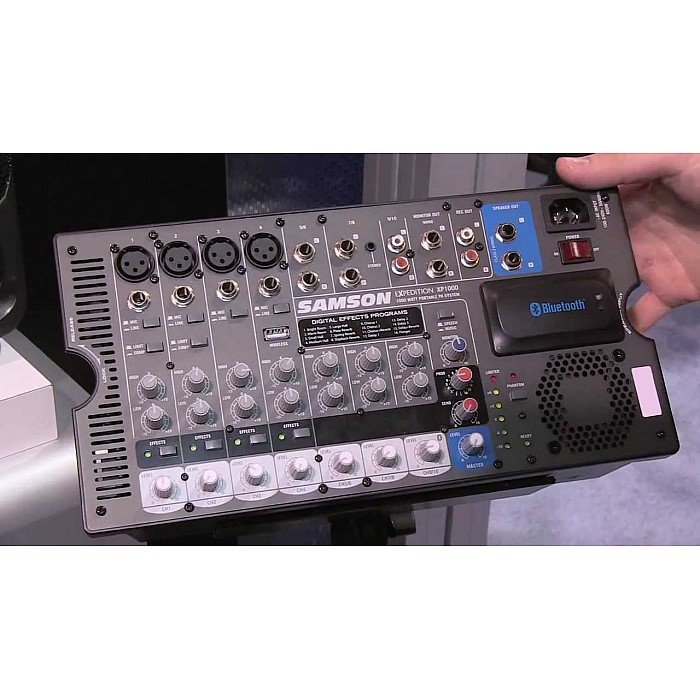 You want the flexibility to be able to run sound effectively wherever you need amplification. Samson's Expedition XP1000's powered mixer is made to handle a range of applications, from speeches to solo singer-songwriters to full-blown ensembles and bands. You get four mic/line inputs, three stereo inputs, and phantom power for condenser microphones. Access the 10 incredible 24-bit digital effects and add a pro polish to your live sound. You can even connect your Bluetooth-enabled device to the XP1000 for instant access to program audio or background music. When it comes to great PA sound, you can take it with you - thanks to the Expedition XP1000!
