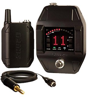 The Shure GLXD16 system includes the GLXD6 (the first Shure guitar pedal receiver). the GLXD1 (provides up to 16 hours of continuous use with Shure lithium-ion rechargeable batteries) and the WA305 Premium 1/4"-to-TA4F guitar cable with locking thread (connects the GLXD1 Bodypack Transmitter to a guitar or bass).