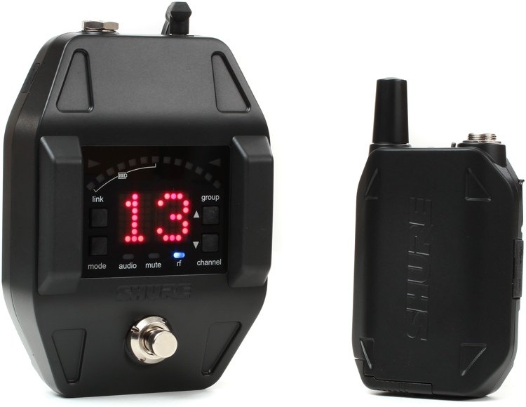 Includes GLXD6 guitar pedal receiver, GLXD1 bodypack transmitter, guitar cable, rechargeable battery, power supply, wall battery charger, and user guide. The GLXD6 is Shure's very first ffot pedal wireless guitar receiver. The GLXD1 provides up to 16 hours of continuous use with Shure lithium-ion rechargeable batteries. The WA305 is a premium 1/4"-to-TA4F guitar cable with locking thread connects the bodypack transmitter to a guitar or bass.