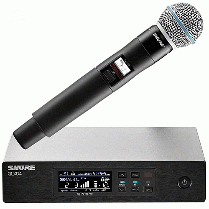 The Shure QLXD digital wireless systems are available in a variety of configurations that accommodate the needs of live presentation professionals from musicians to business leaders to auctioneers and beyond. This is the QLXD24/B58 system, which includes the QLXD2 handheld transmitter equipped with a Beta 58 capsule, the QLXD4 digital wireless receiver, instrument cable, power supply, 2 AA batteries, two 1/2 wave antennas, 2 BNC cables, zipper bag, 2 BNC bulkhead adapters, rackmount kit, and user guide.