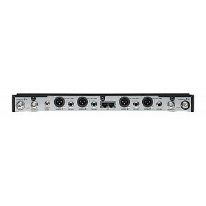 The SLXD4Q+ packs an impressive amount of functionality into a space-saving 1U rackmount unit. For starters, you get four channels in a single unit, enabling you to increase your channel count with minimal impact on your system’s available real estate. A wide 138MHz tuning range allows you to deploy the SLXD4Q+ in practically any RF environment, regardless of how crowded it is, eliminating the need for touring engineers to manage a large number of narrow-range units. If you don’t have four open mixer channels, the SLXD4Q+’s internal audio summing allows you to combine audio signals for three, two, or one quad-receiver audio outputs configured for the number of inputs you have available. RF cascading allows you to build a single 8-channel receiver by connecting two SLX-D quad-channel receivers — no additional accessories or cables are required. Bias voltage accommodates UA874 active directional antennas without an external power supply. Finally, four XLR and 1/4-inch outputs with two Ethernet connections supply you with ample connectivity.