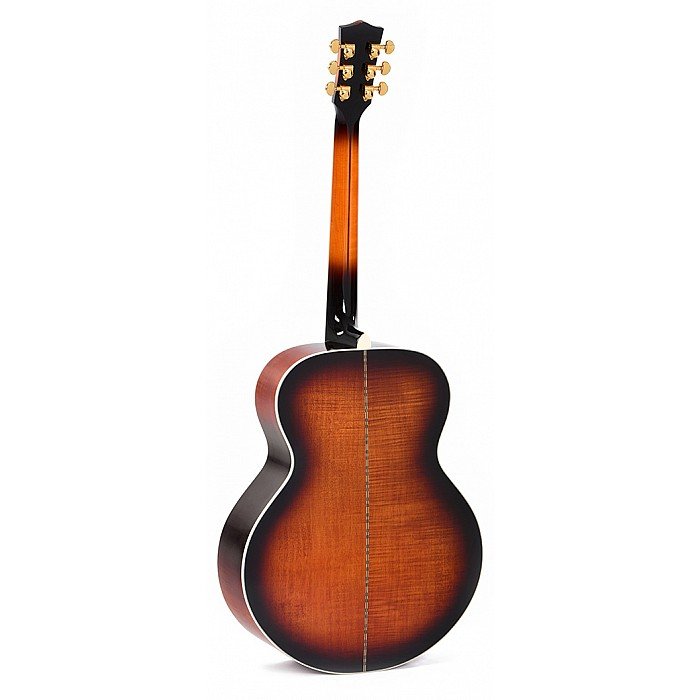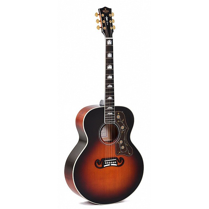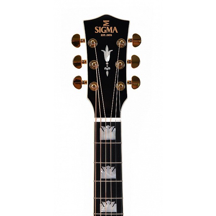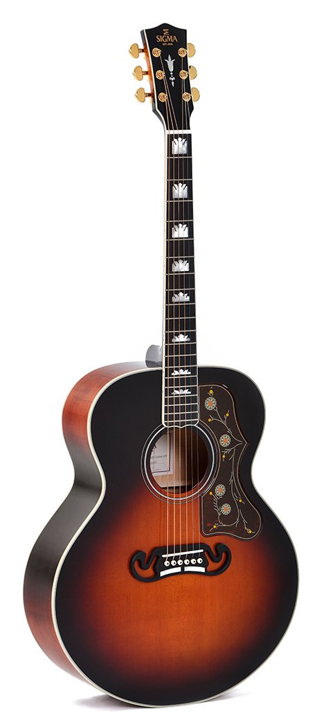 This makes the Sigma SGJA-SG200+ Limited Grand Jumbo ideal for powerful vocal accompaniment with strumming or flat picking. In addition, the flat low-profile neck profile fits comfortably in the hand while the gold-plated vintage tuners keep the tuning clean. As a visual refinement the pickguard carries "Engraved Flowers" and crown inlays have been implemented into the fretboard. For on-stage use, the Fishman Sonitone pickup is available, which transmits the superior sound of the Sigma SGJA-SG200+ Limited to the amplifier with warmth and naturalness. Last but not least, a case is already included in the delivery.