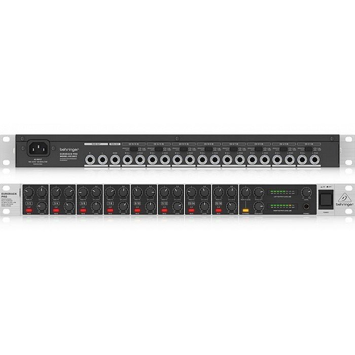 The Behringer EURORACK PRO RX1602 V2 is a super-flexible, multipurpose line mixer. It’s ideal for submixing, multitrack monitoring, level matching, and a whole lot more. Its 16 balanced, high-headroom line inputs accommodate eight stereo or 16 mono sources. Each channel includes dedicated Balance and Level controls, along with a +4/-10 level selector, ensuring compatibility with a broad range of professional- and consumer-level gear. Flexible monitoring is yours with the RX1602 V2, thanks to a Monitor/FX Send control for each section, plus a global master send control.