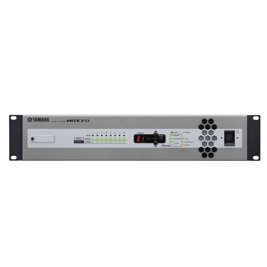 The MRX7-D from Yamaha is a Dante-enabled signal processor that delivers control and flexibility to a wide range of applications, including corporate conference rooms, educational facilities, shopping malls, and more. Its configurable architecture makes it easy to create customized solutions for professional audio setups while optimizing digital signal processing (DSP), making the MRX7-D a great choice for networking devices over a long distance—no matter whether your setup is small or large, simple or complex, or anywhere in-between. Dual Dante ports make the MRX7-D effortlessly compatible with any Dante-enabled products, such as microphones, digital mixers or amplifiers, and other signal processors. The MRX7-D’s wide range of interconnectivity options includes Yamaha’s selection of Digital Mixers and XMV-D amplifiers.