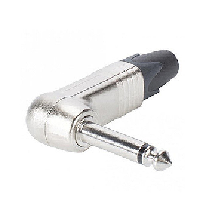 1/4" professional right-angle phone plug, 2 pole, nickel contacts, nickel shell