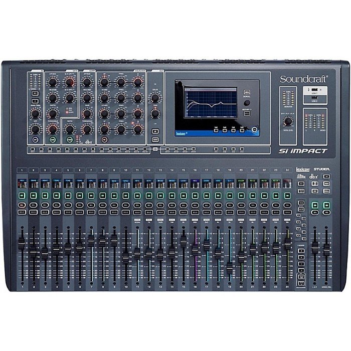 Drawing on over 40 years experience in live sound mixing, Si Impact brings the latest digital mix innovations together with the unrivalled sound quality of Soundcraft. Designed to be as simple as an analog mixer, but offer radical workflow enhancements such as the unique FaderGlow™ system, massive DSP power, and a pristine 32-in/32-out USB audio interface, Si Impact delivers digital live sound mixing and recording for those who refuse to compromise on audio quality.