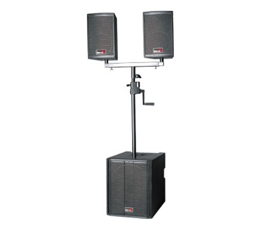2000TⅡ-2 is a compact active sound system consisting of two single 8" two-way full-range satellites and a single 15" double-toroid subwoofer. The subwoofer is equipped with a three-channel power amp and all the electronics required to drive the bass bin and satellite, such as preamps, stimulus, compressor & expander, 50~250Hz bass crossover, EQ, PEQ, noise gate, ect. The total output power (RSM ) is over 800W. Painstakingly fine-tuned to match the speakers for th best possible sound, the electronic circuitry protects it from overloads and makes this system very easy to operate.