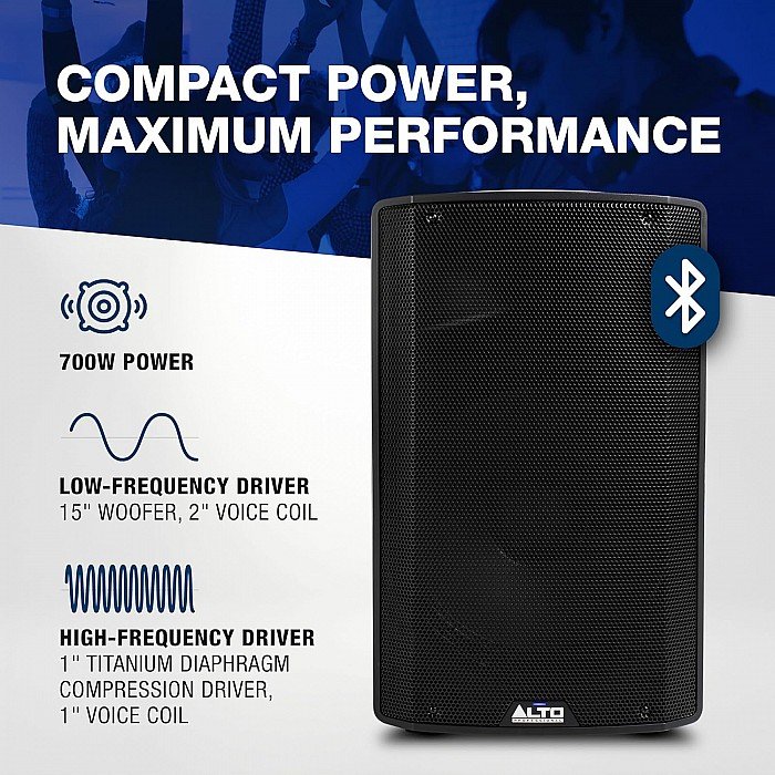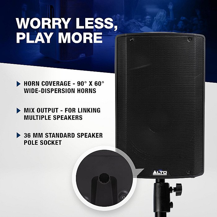 Are you searching for clear, robust sound that punches far above its price point? Of course, you are — and thanks to its burly 700-watt Class D amplifier, the Alto Professional TX415 is definitely up to the task. For starters, this 15-inch powered loudspeaker boasts a 90- x 60-degree wide-dispersion horn, capable of filling any small- to mid-sized venue with pristine, powerful sound. Moreover, the TX415’s DSP-enhanced design provides a bevy of pro-level features, including a 2-channel mixer with a Mix output for linking multiple speakers, stereo Bluetooth streaming, and a Contour EQ for high-quality music playback.