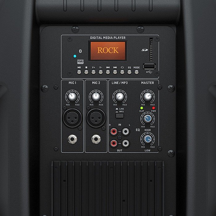 The amazing PK115A features a built-in 3-channel mixers with the same ultra-low noise, high-headroom mic preamps that have made our mixers legendary. Also included is 2-band equalizer, plus Bluetooth for streaming audio directly from your device, and 2 standalone Mic inputs and a Line input accept virtually any level signal you’re likely to run across. Variable Input gain controls (with Clip LED) will have you dialing in the perfect level every time. The simple and intuitive user interface consists of a dedicated Level control per channel, a Master volume and separate controls for Treble and Bass.