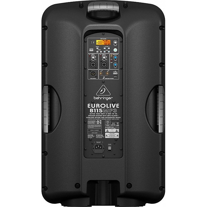 The EUROLIVE B115MP3 active loudspeaker is exactly what you’ve come to expect from Behringer, more power, more features and absolutely more affordable! Our engineers have really outdone themselves, creating a self-contained PA solution that merges state-of-the-art, 1000-Watt Class-D power amp technology with an integrated 2-channel mixer, built-in wireless microphone capability, a high performance MP3 player and exceptional portability. Then we loaded the B115MP3 with our best 15" long-excursion driver for incredibly deep bass, and a state-of-the-art 1" phenolic-diaphragm compression driver for exceptional high-frequency reproduction.