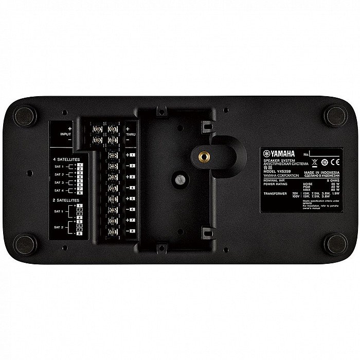 The original Yamaha SR-Bass™ technology used in the VXS3S suspends the four-sided diaphragm on only one side, using diaphragm resonance to enhance the system's low-frequency output. There are no limitations on the shapes and materials used for the diaphragm, making SR-Bass™ technology applicable to a wide variety of speaker designs, including compact models.
