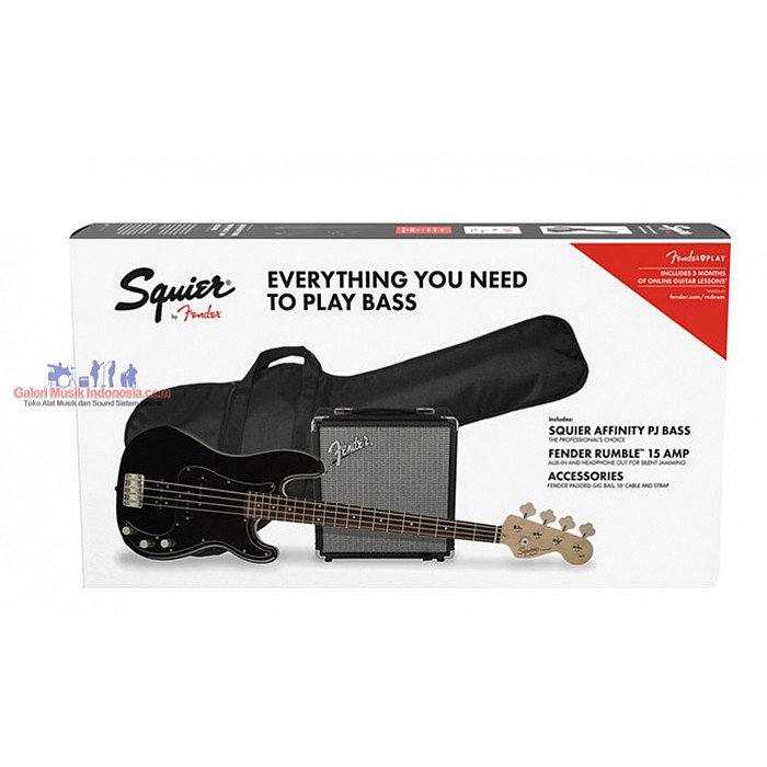Delivering 15 watts of pure Fender bass tone, the Rumble 15 amplifier features an 8" Fender Special Design speaker, three-band EQ, headphone jack for silent practice and an aux input for playing along with your favourite songs or backing tracks. With the included padded gig bag, strap and 10' cable, the Squier Affinity PJ Bass Pack has everything you need to stop dreaming and start playing.