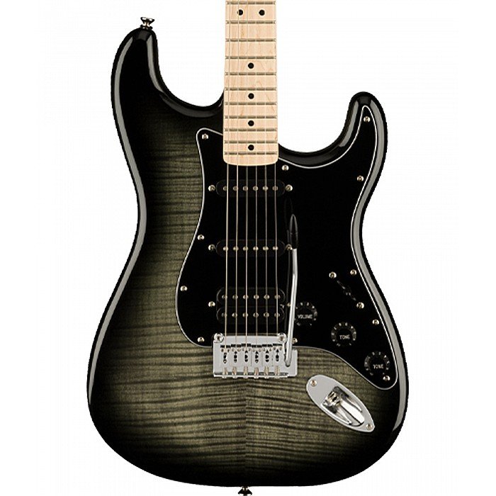 The Squier by Fender Affinity Series Stratocaster HSS is a superb gateway into the time-honored Fender family. This Strat features several player-friendly refinements such as a thin and lightweight body with an eye-catching flame maple top (FMT), a slim and comfortable "C"-shaped neck profile, a 2-point tremolo bridge for superior tremolo action and sealed die-cast tuning machines with split shafts for smooth, accurate tuning and easy restringing. Loaded with a Squier humbucking bridge pickup and single-coil neck and middle pickups for genre-defying sonic variety, this model is ready to accompany any player at any stage.