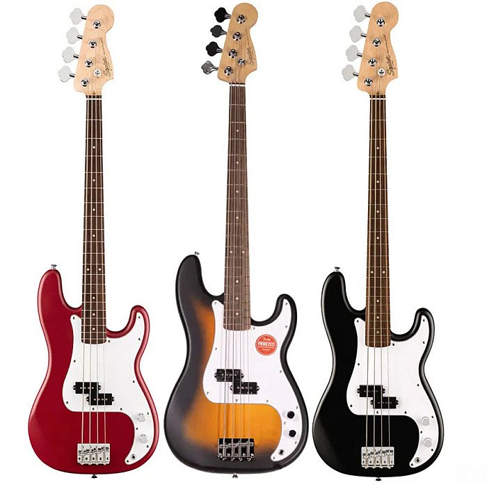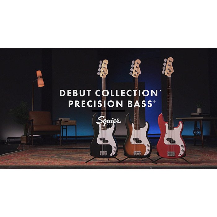 The Squier Sonic™ Precision Bass® is ready to launch any musical adventure into high gear, offering iconic Fender® styling and inspiring tone for players on any stage. This P Bass® features a slim, inviting “C” shaped neck profile with a narrow 1.5" nut width and a thin, light body for optimal playing comfort while the Squier® split single-coil pickup produces punchy bass tones. More details This model's features include a 4-saddle hardtail bridge for precise intonation adjustments, an open-gear tuning machine for smooth and accurate tuning, and durable chrome-plated hardware that's sure to turn heads. Lightweight body for a comfortable playing feel A slim “C”-shaped neck profile for easier playing. Single-coil pickup with volume and tone controls for a diverse selection of tones, Open-gear tuners for smooth, precise tuning Timeless, iconic Fender P-Bass design.