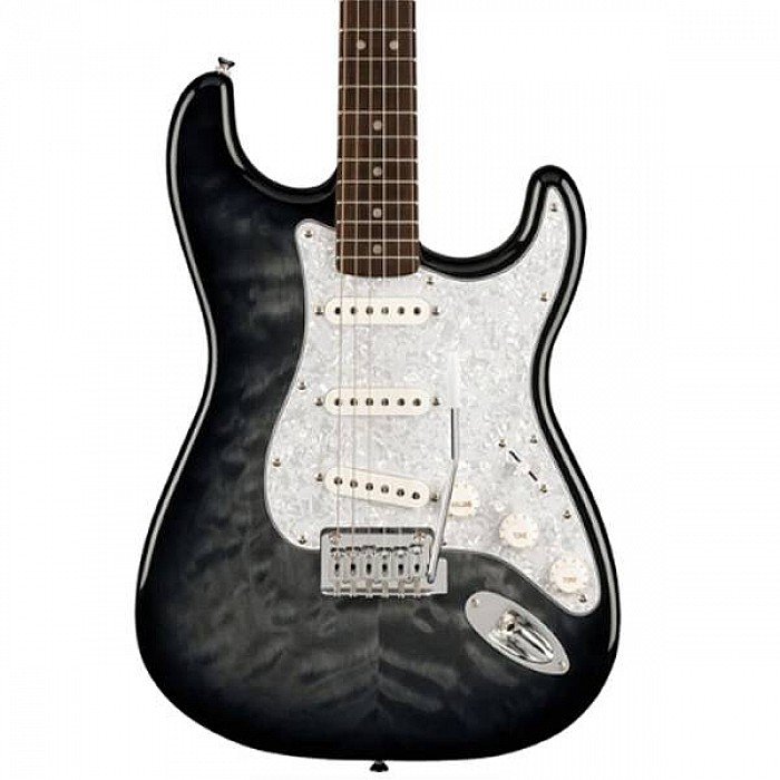 Spesifikasi Squier FSR Affinity Stratocaster QMT Electric Guitar, Laurel FB, Black Burst