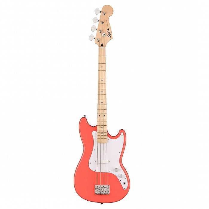 Squier Sonic Bronco Bass Guitar w/White Pickguard, Maple FB, Tahitian Coral