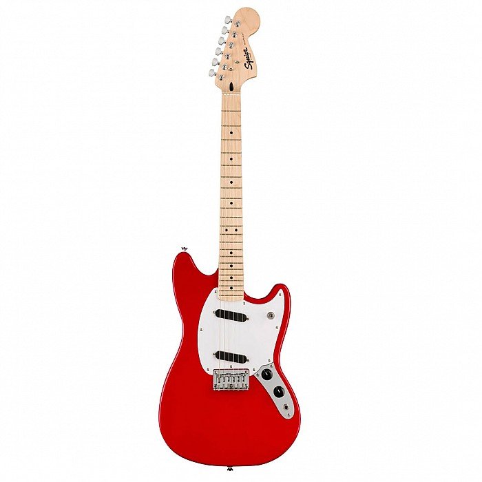 Spesifikasi Squier Sonic Mustang Electric Guitar w/White Pickguard, Maple FB, Torino Red