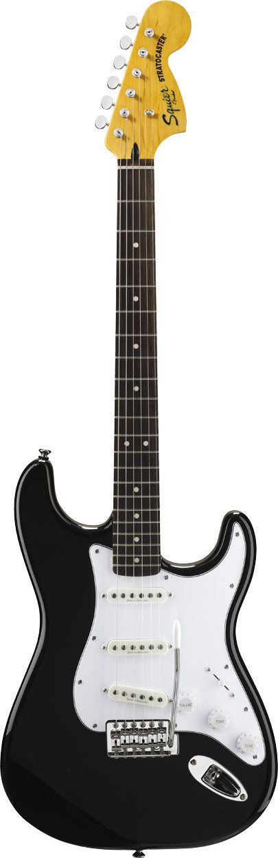 Unique Features: Duncan Designed™ Single Coil pickups, Duncan Designed™ Hum Cancelling Pickup, Vintage Style Tremolo, Gold and Black Squier Logo, Engraved Neckplate, White Plastic Parts, Dot Position Inlays