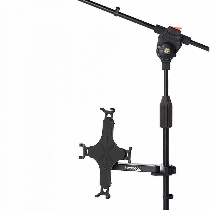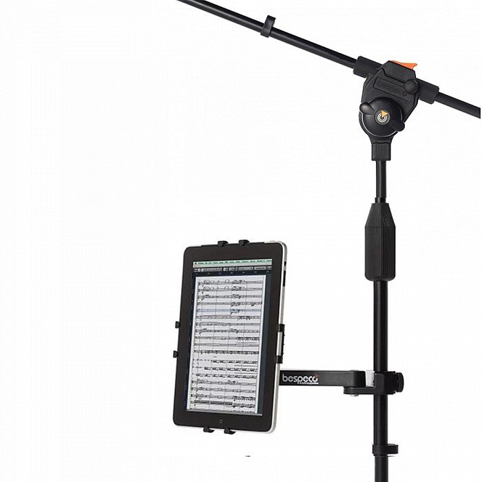 The TAB100 Tablet Stand from Bespeco is a universal tablet stand with an integrated microphone stand attachment. The unit is compatible with most tablets and is certified for Apple iPad 2 and 3, as well as Galaxy Tablet 2/3 and Galaxy Note 10.1. The TAB100 is adjustable to any position and features a special soft-touch paint that provides protection.