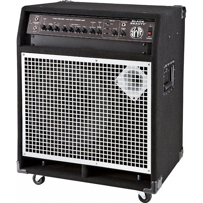 SWR's Black Beauty combo amp features a custom SWR 15-inch bass driver and high-frequency horn tweeter in a 4-ohm speaker configuration - driven by 350 watts RMS (450 watts using a 4-ohm extension speaker cabinet). In addition to dramatic, new chassis graphics (featuring the SWR badge in classic chrome), the Black Beauty has inherited a very popular effect from the SWR Mo' Bass soundstation - the SWR SubWave - producing clean, pure and accurate octave signals. A Subwave Footswitch with a hardwired 1/4" cable ships with the Black Beauty as an added bonus.