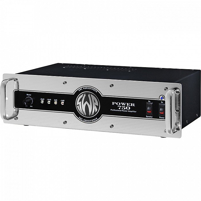 Packed with a mighty 750W at 4 ohms, the Power 750 can be used to power any SWR preamp, or augment any existing SWR amp head for a true multi-cab monster rig. SWR likes the sound of "one horsepower" better than 750 watts, but either way, this SWR power amp is pretty damned loud.