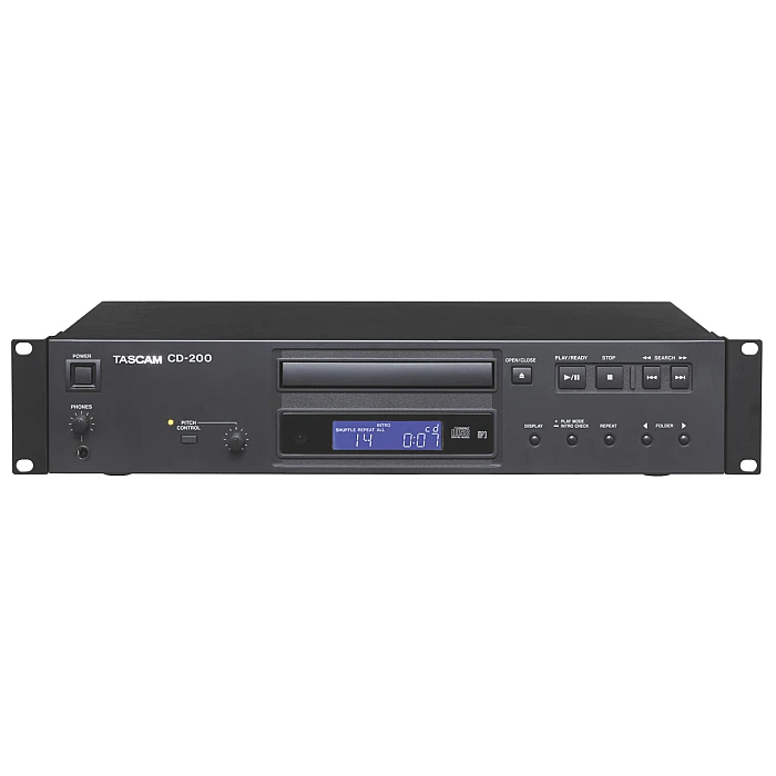 TASCAM's CD-200 is a follow-up to the hugely popular CD-160 series of CD players. The player boasts playback of MP3 CDs for hours of playback, and has both optical and coaxial digital outputs. The CD-200 is equipped with a new transport custom-designed for audio playback, along with a smooth-loading drawer and low clamping noise. Sound quality has also been improved, as the internal clock is more accurate and produces less jitter. A wireless remote control with numerical track select buttons is also included with the CD-200.