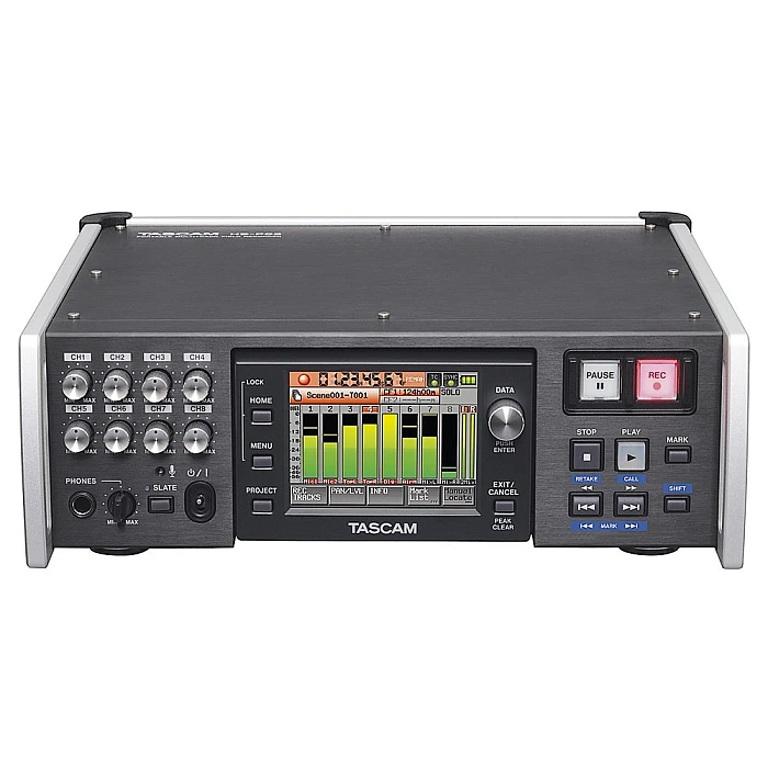 The HS-P82 from Tascam is a professional-quality field audio recorder that offers 8 tracks of high-definition audio recording in a rugged and reliable body. The unit has 8 XLR mic inputs, each with phantom power and analog limiting. Recessed front-panel trim controls for each channel prevent accidental changes. In addition to the 8 individual tracks, a stereo mixdown can also be recorded for instant use during editing.