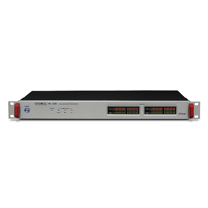 The ML-32D Dante / Analog Converter from Tascam is a Dante-focused converter designed to insert or extract analog audio into or out of a Dante (Digital Audio Network Through Ethernet) network using external breakout devices that utilize D-Sub format connectors.