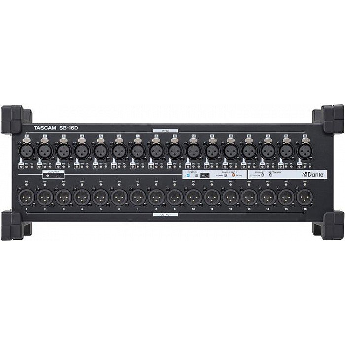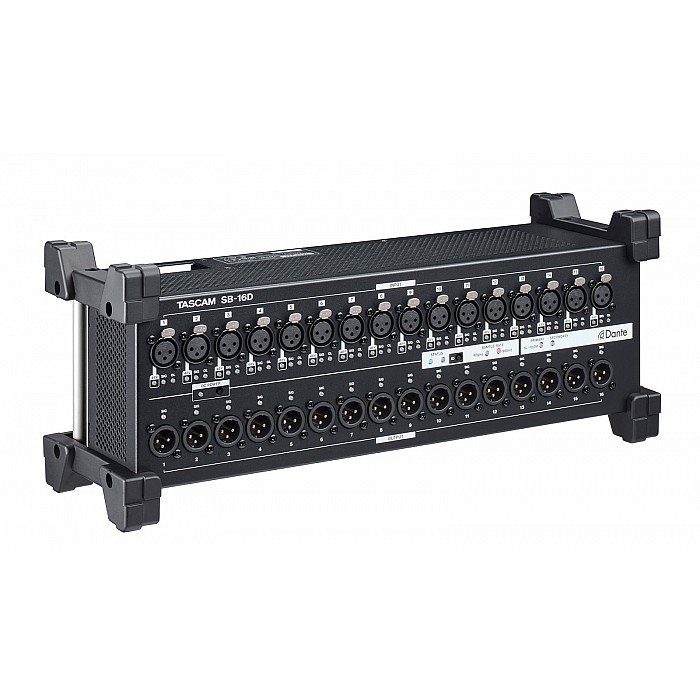 Offering the same performance and hardware quality as Sonicview recording and live mixers, TASCAM SB-16D Dante-networked 16-in / 16-out stage box offers all the advantages of Dante networking, combined with seamless integration with Sonicview mixers. The stage boxes can be used as a floor stage box or rackmounted, and multiple stage boxes can be used simultaneously in a Dante network.