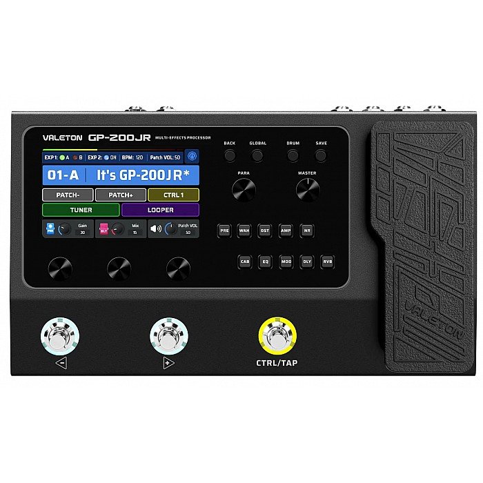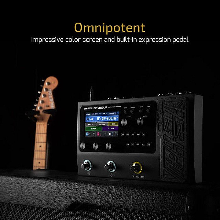 GP-200JR is a new product of the 2nd generation platform of Valeton GP series, a compact HD modeling multi-effects processor. As you can see, compared with the GP series flagship model GP-200, the GP-200JR has significantly reduced its size, but it also retains the screen, knob and button required for human-machine interaction, the complete interface, and the sensitive and efficient built-in pedal. While ensuring its portability, it ensures its functionality to the maximum extent to apply to different performance scenes.