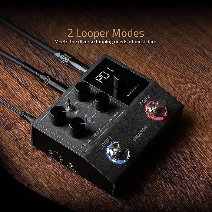Designed to be Valeton's new platform of music creation tool, the compact and sturdy VLP-200 contains two full-featured loopers and a variety of drum rhythm patterns, competent to play the role of your right-hand assistant for songwriting, practice and live performance. The built-in two loop collaboration modes can easily run two loops in parallel or switch song parts between two loops. With the well-tuned drum machine, your song motives are now full of infinite possibilities. The built-in storage space for 99 recording projects, together with supporting software, can easily deal with the import and export management, making VLP-200 your portable music library.
