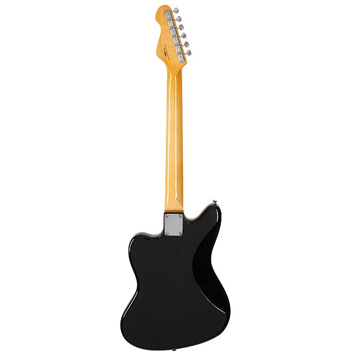 The body of the V65VBK is made of alder wood. The bolted maple neck is glued to a fingerboard made of Lignum Rosa (laminated wood), a composite material similar in properties and appearance to rosewood, fitted with twenty-two Medium Jumbo frets. Two Wilkinson pickups in a soap-bar design give the guitar defined bass and punchy humbucker mids, while the bright highs of the single-coil pickups. Their sound can be shaped using the volume control, tone shield and three-position toggle switch. The strings are anchored by Wilkinson tuning machines and a vintage offset (Jazzmaster) vibrato with an extended tremolo lever.