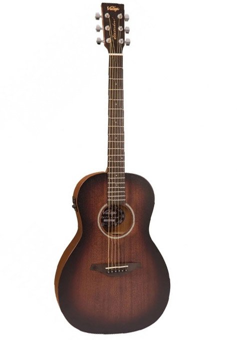 The Vintage Statesboro Paul Brett Parlour Electro is a light, easy playing instrument with a smooth top end tonality. Featuring a handpicked mahogany build to deliver warm, crisp, and articulate sonics in every strum, it'll get you right into that retro spirit. Designed by English guitarist and blues historian Paul Brett, the Statesboro Parlour offers a sleek, modern playing action through a palm-friendly neck profile and quality crafted frets. It only gets better! Equipped with in-built electronics, you can fire your acoustic dynamics through an amplifier or PA system for excellent performing flexibility. Additionally, you can shape the tone to your liking with EQ options and a phase switch to suit the situation. And speaking of performing, you'll always be in tune thanks to the in-built tuner that allows for quick, on-the-fly tune ups. Offering a vintage, effortlessly classy style and a host of approachable playing features, the Statesboro Parlour is an attractive instrument for any level of player.