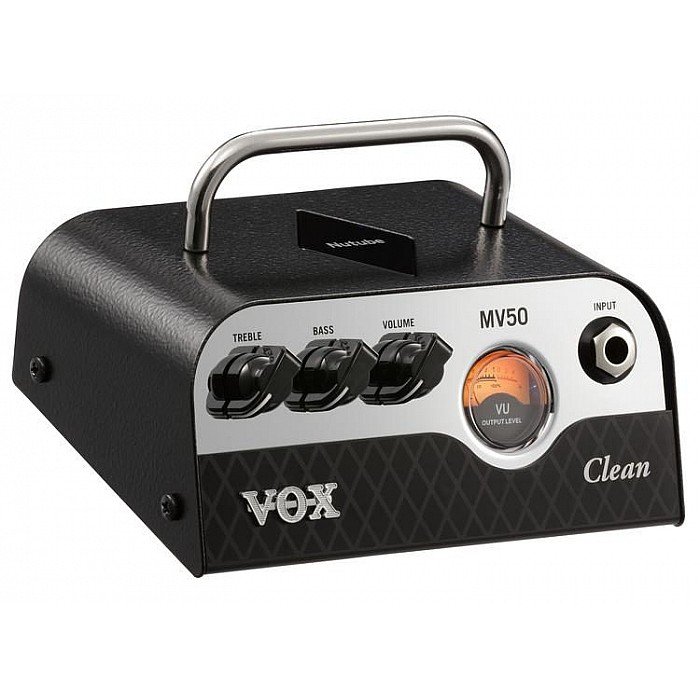 The Vox MV50 Clean mini electric guitar amplifier head ushers in a new level of professional-quality tones and convenience for guitarists chasing high-headroom clean tones. The MV50 Clean utilizes a Nutube in the preamp section for true tube performance, sound, and feel. But the kicker is that it does it all in a package that weighs just over a pound and fits in the palm of your hand. If you're looking for a tone that works as well for clean styles as it does as a pedal platform, the MV50 Clean is the mini guitar head of your dreams.