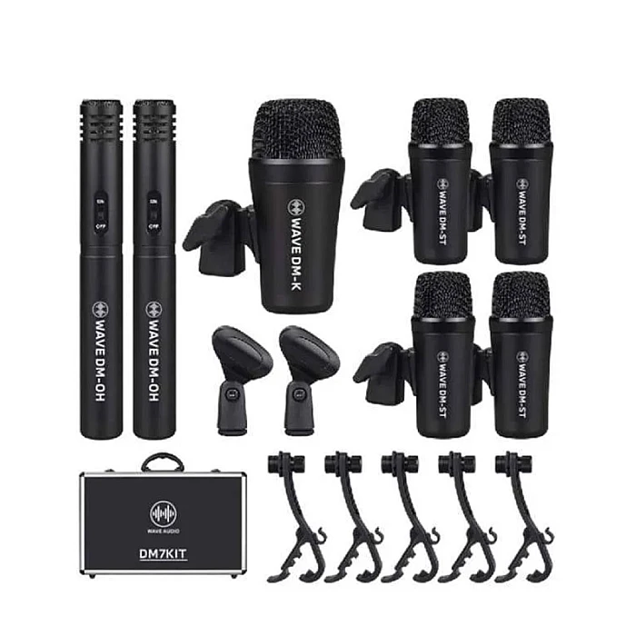Wave DM7KIT consist of different types of instrument microphones. It is specially designed for percussion instruments like bass drum, jazz drum. It features high resolution for sound reproduction, rugged and fashionable microphone body construction, aluminum carrying case with foam inlay for convenient carrying.