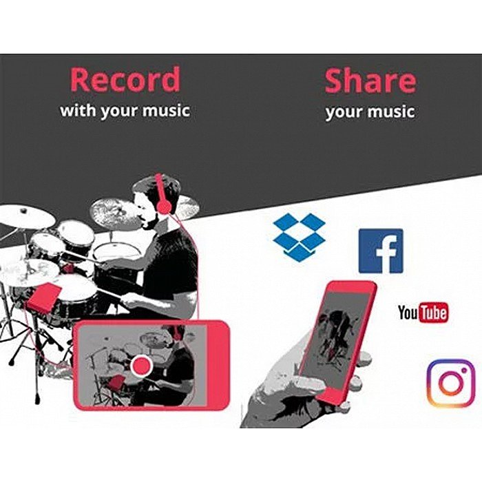 Yamaha's Rec'n'Share app (iOS) injects your mobile video with audio straight from your DTX402 module for performances that are easy to share with friends, bandmates, and video services like YouTube. It all happens on the fly: pick songs from your iOS music library, find the sounds you're after, and point and shoot.