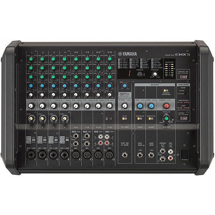 EMX5 is equipped with a Feedback Suppressor that utilizes a unique Yamaha digital technology to instantly eliminate annoying feedback with the single switch of a button, which utilizes a seven-band notch filter.