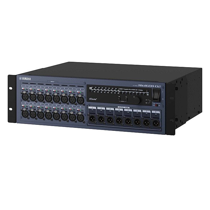 The Rio1608-D2 is a high-performance I/O unit for Yamaha's CL, QL, and RIVAGE PM series consoles. This digital stagebox is loaded with 16 great-sounding mic preamps that achieve the transparent, natural quality Yamaha is known for. The Rio1608-D2 connects directly to a Dante digital audio network, giving you flexible system configuration at up to 96kHz. Enjoy peace of mind, thanks to dual redundant power supplies. You can also daisy-chain connections. Beyond that, you'll benefit from local control of gain and other parameters. The live sound pros at GMI appreciate how the Rio1608-D2's character display offers easy visual confirmation of your settings.