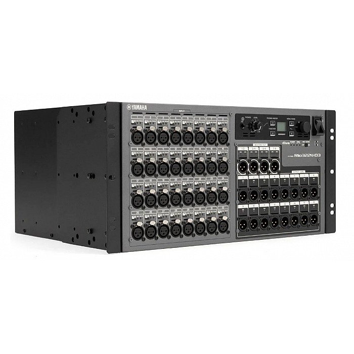 The Rio3224-D3 is a high-performance 32-input x 24-output I/O unit for Yamaha's CL, QL, and RIVAGE PM series consoles. This digital stage box is loaded with 32 pristine head amplifiers (with switchable 48V phantom power for condenser mics) that deliver the transparent, natural sonics Yamaha is known for. The Rio3224-D3 connects directly to a Dante digital audio network, giving you flexible system configuration at up to 96kHz. You also get four stereo AES outputs to expand your connectivity. Enjoy peace of mind, thanks to dual redundant power supplies — you can also daisy-chain connections and you'll benefit from local control of gain and other parameters. Finally, the live sound pros at here appreciate how the Rio3224-D3's character display offers easy visual confirmation of your settings.