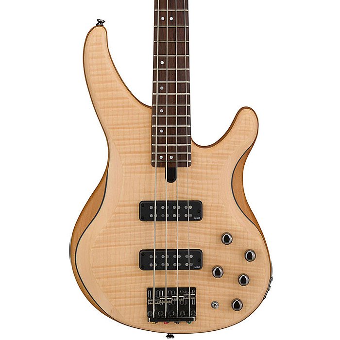 The TRBX604FM is built from quality tonewoods. A solid alder body provides a balanced yet punchy foundation for this bass's tone, yielding equal doses of lows, mids, and highs. A stunning flamed maple top frames the TRBX604FM's basic tone with brightness, bite, and sustain. And the added snap and warmth provided by its 5-piece rosewood-capped maple/mahogany neck are the final ingredients in the TRBX604FM's classic tonal recipe. Loaded with professional features, the Yamaha TRBX604FM offers incredible value in a bass guitar. A classic tonewood combination of solid alder and stunning flamed maple delivers punch, bite, and sustain by the truckload. A comfortable 5-piece maple/mahogany neck combines excellent playability with superior tone and stability. Experience maximum sonic flexibility, by way of the TRBX604FM's YGD H5 pickups and audiophile-grade active/passive 3-band EQ. Beyond that, a high-mass die-cast bridge and innovative headstock design provide optimal vibration transfer and tuning stability. A battery-alert LED and satin matte finish round out the impressive TRBX604FM.