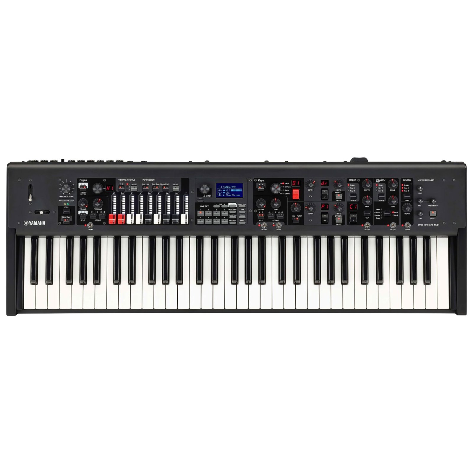 The YC61 is brimming with the signature tones of Yamaha’s classic line of combo organs—super-fat low end, thick organ swells, mellow emanations, and biting leads, along with the inimitable sound of a rotary speaker. With its drawbar controls, the YC61 presents a sizeable sonic palette with tons of tweakability. Layer up a fat organ pad. Pull back the bars for a focused sound. Dial up the percussiveness. Beyond the incredible organ sound, Yamaha’s updated Stage OS and the YC61’s Dual Keys section, give you have control over a slew of instrument voices, including acoustic and electric pianos, FM synth, strings, and brass. And, the YC61’s nine onboard effects, such as vibrato/chorus, reverb, delay, and drive, make for endless musical possibilities.