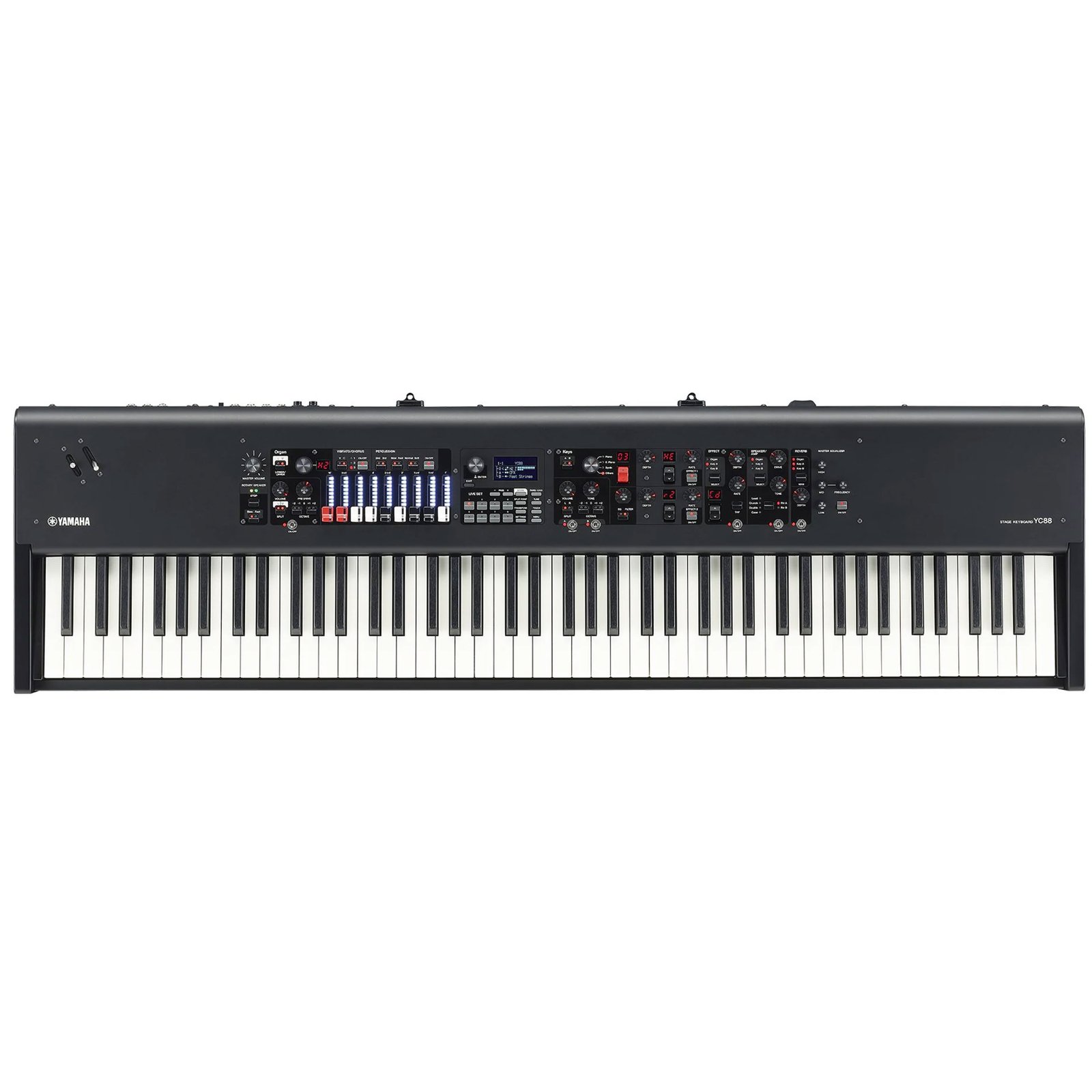 The nine organ stops on the YC88 have the stops and stops you expect from an organ. But our pulls are also pleasing to the eye. Clear stops with color-adjustable LED lights make it easy to see the differences between the simulated upper and lower configurations and to play in split keyboard mode. It's like having a virtual set of organ cues at your disposal, giving you more sounds, more flexibility, and more options than you ever thought possible with such a compact stage keyboard instrument.