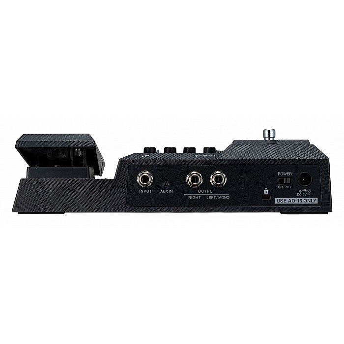 Expression pedal enables real-time control over volume, wah, delay, and pitch effects