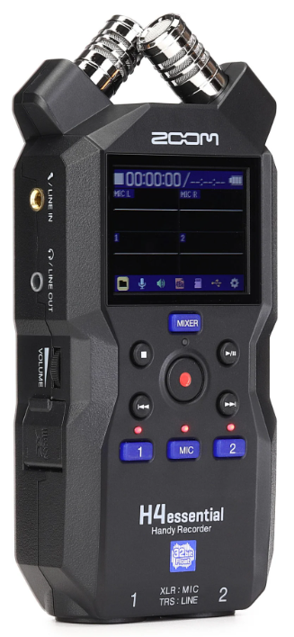 Limiting yourself to one track means you'll be recording take after take. Zoom has curbed this issue by outfitting the H4essential with four simultaneous recording and playback tracks. Combined with the recorder's dual combo inputs and modern X/Y microphones, you'll have endless ways to record the perfect take in one go. The H4essential's full-color LCD makes surfing the recorder's entire feature catalog a breeze. To add to the pot, quiet operation recording and rotary controls, including transport buttons and an on-side volume knob, make it possible to navigate your workflow with a single hand, providing excellent field utility. Additionally, onboard microphone and track controls present an easy way to navigate dual-device recording in your workflow, with a visual representation available on-screen for immediate monitoring.