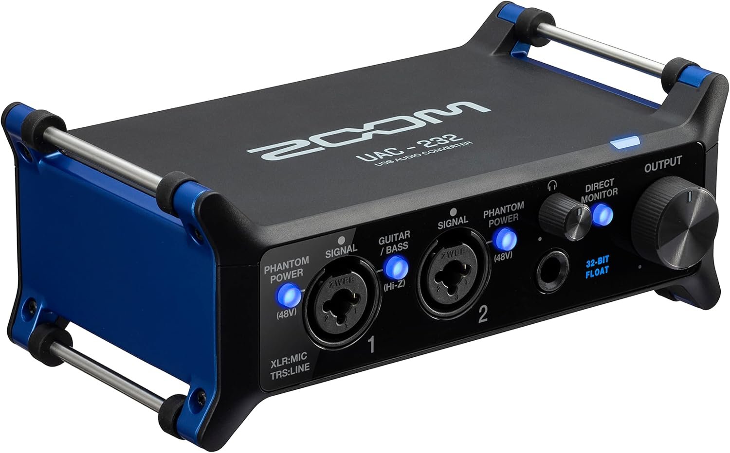 The Zoom UAC-232 USB 2.0 Audio Interface is tailor-made for podcasters, musicians, streamers, and recording artists of all stripes. The UAC-232 builds on the success of the UAC-2 but ups the ante with an incredible 32-bit/192kHz A/D resolution, USB-C 2.0 connectivity, and a more lightweight chassis design. This low-latency recording interface combines microphone preamps equivalent to those in the F6, direct instrument inputs, and line-level support with onboard MIDI I/O to give you a wide range of workflow options. Whatever you need to record, the Zoom UAC-232 has you covered. Plus, each input stands ready with a +48V phantom power switch available for condenser mics. Lastly, users can activate the hi-Z by clicking the Guitar/Bass button to record directly.